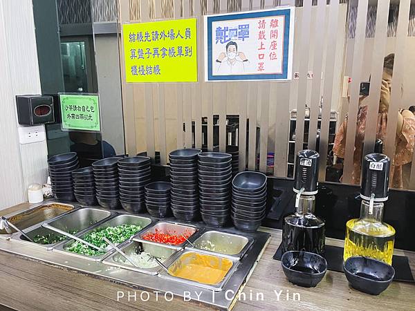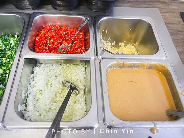 醬料:沙茶、蔥、加辣的蔥、辣椒、蒜頭、洋蔥、花生醬 / 自助式加湯