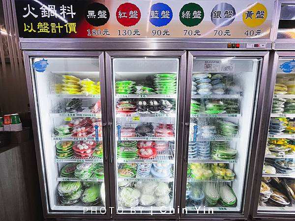 火鍋料:不同顏色的盤子代表不同的價位40元~180元不等