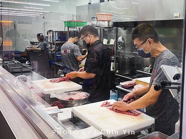 在店前方就是廚房,環境空間透明玻璃保護的很好,如同實驗室,外面等骨科看得到師傅們切肉