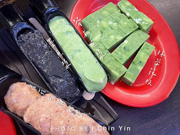 這道口感說不上來的奇特,第一次遇到把抹茶融入在魚漿中,口感有點偏硬但又有點Q彈吃過就好